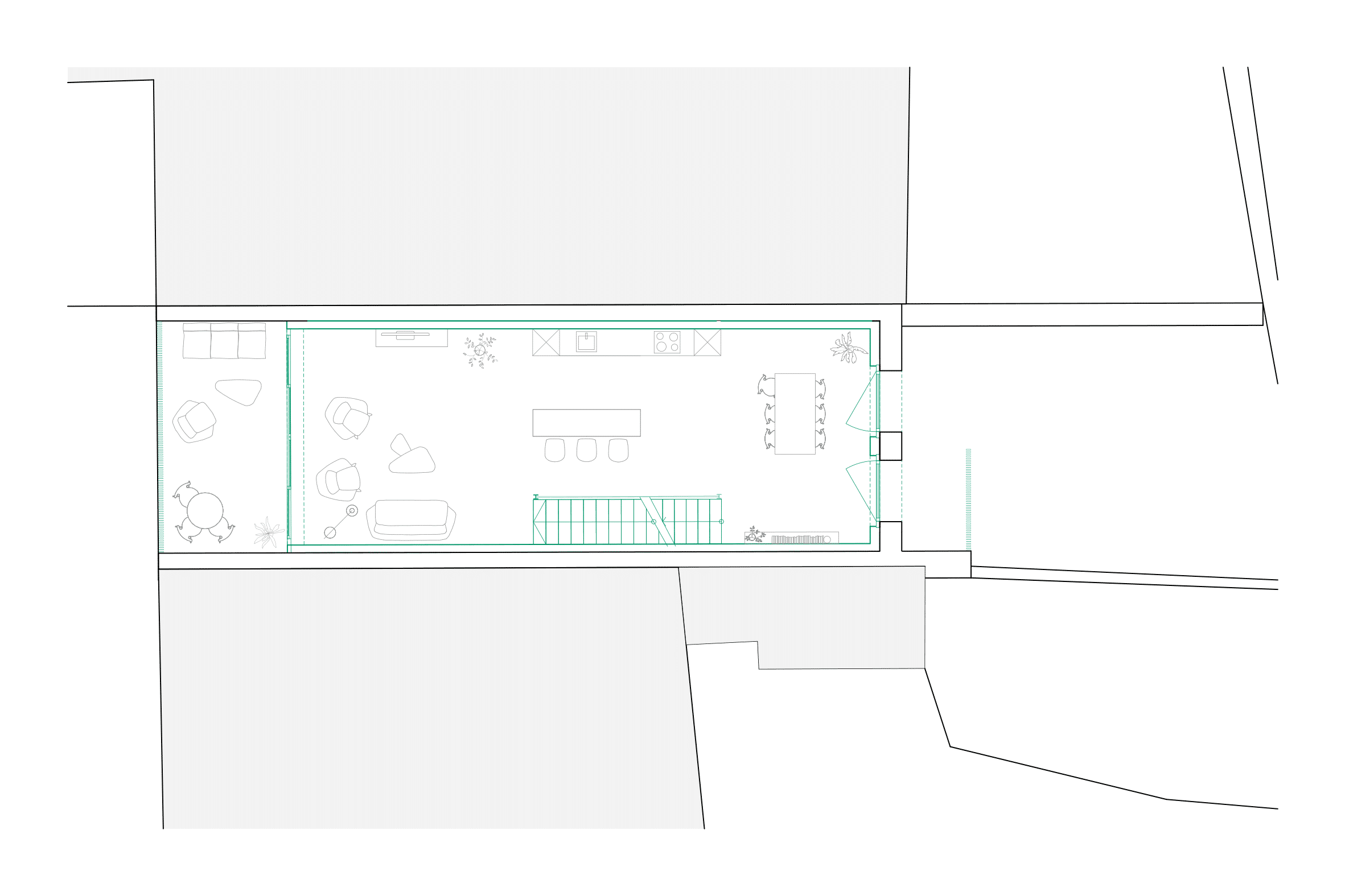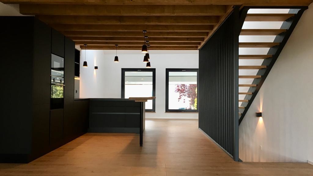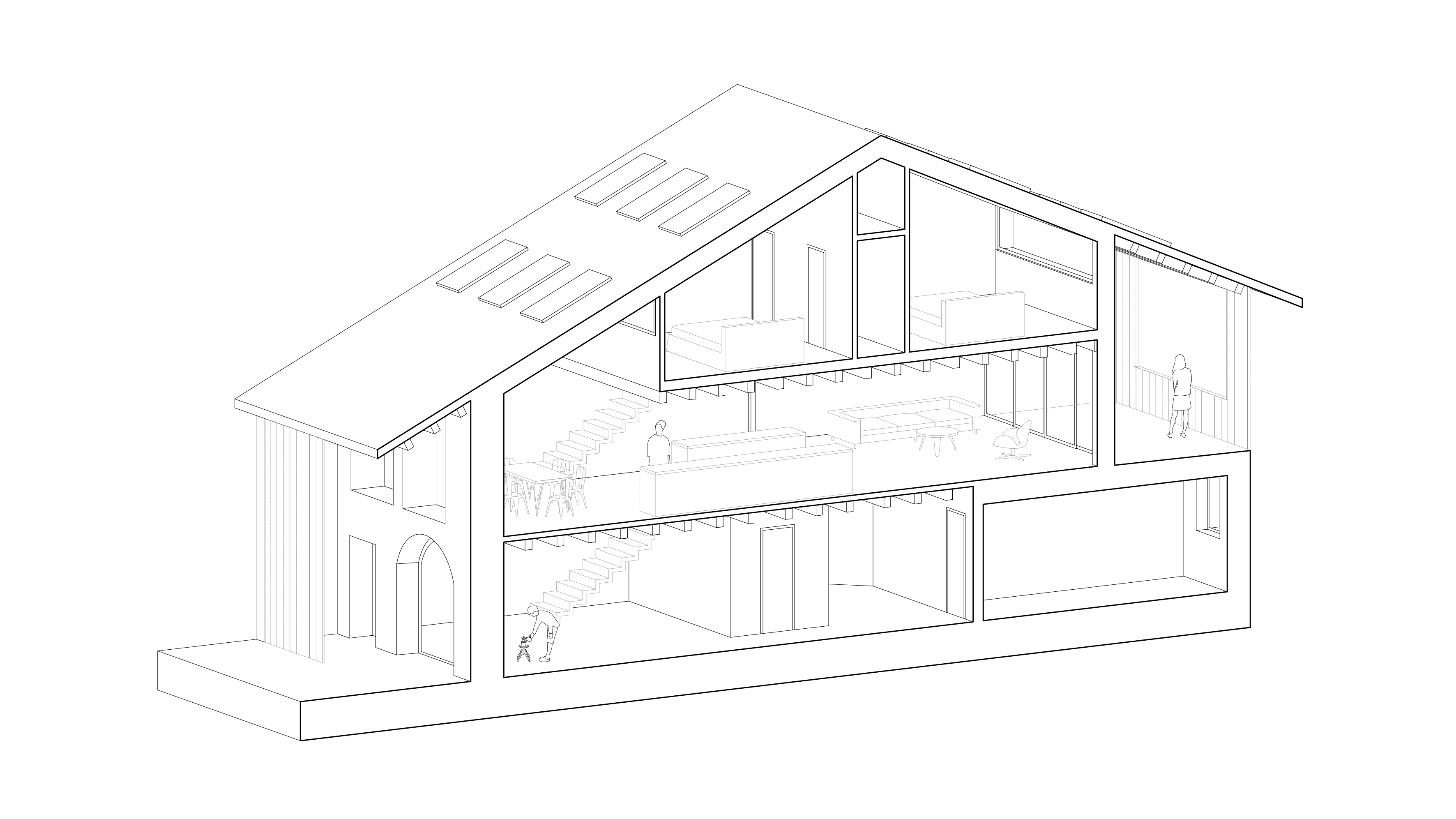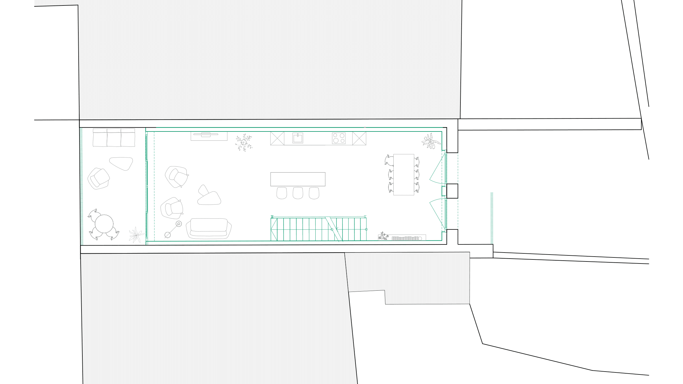 Création d’un logement se développant sur 3 niveaux. Le plan étroit et profond impose de mener une réflexion particulière sur l’apport de la lumière.